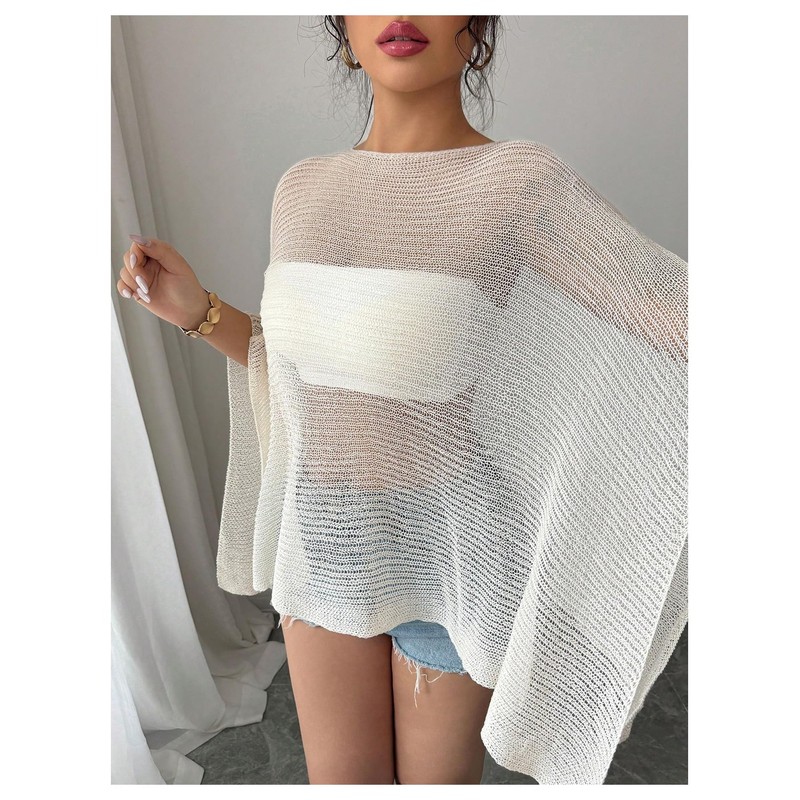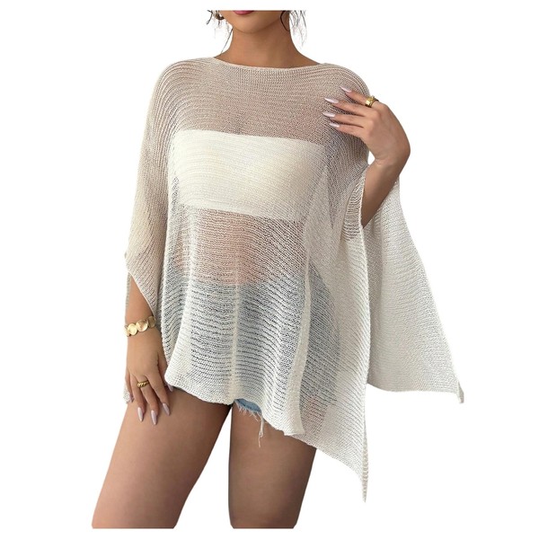 - Features: Poncho shawl for women, sheer mesh, 3/4 length, boat neck, loose fit, asymmetrical