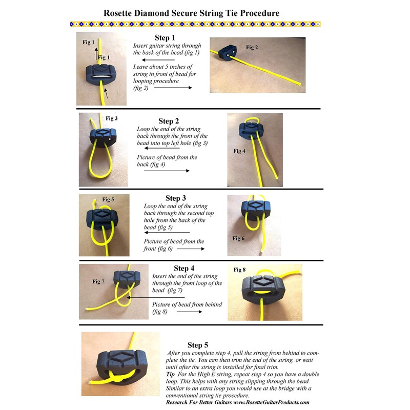 Rosette Diamond Secure String Ties - Ivory White Classical Guitar Bridge Beads