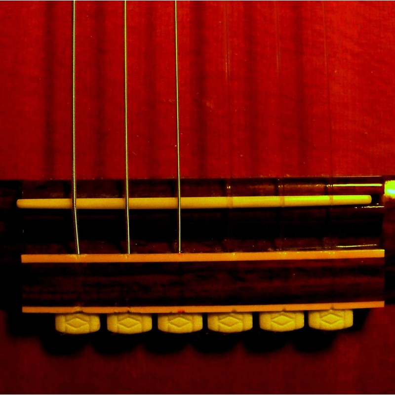 - Provides a more uniform string angle from saddle to bridge hole