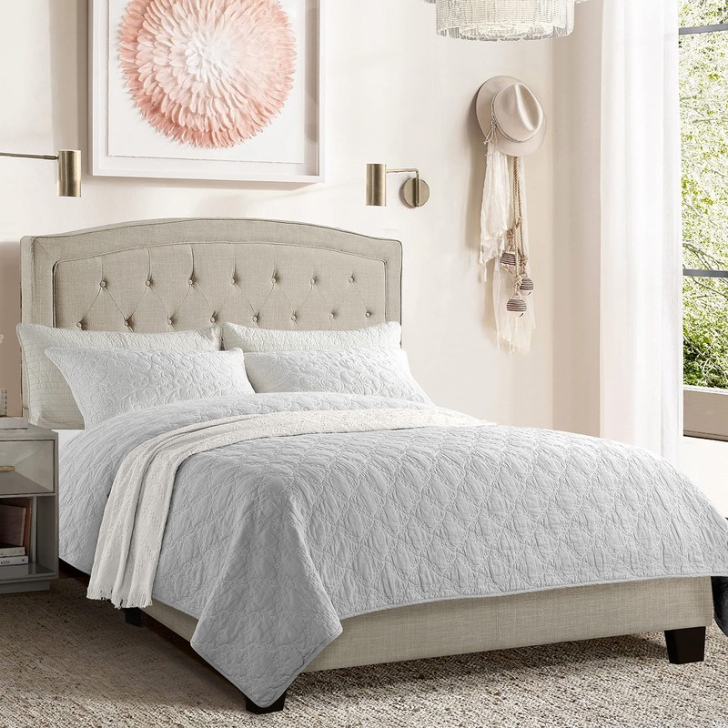 - ADJUSTABLE Designed to be paired with a multitude of bedding situations, this headboard is adjustable to 42", 46", 50", and even 54" (height) to better accommodate different thickness of mattress.
