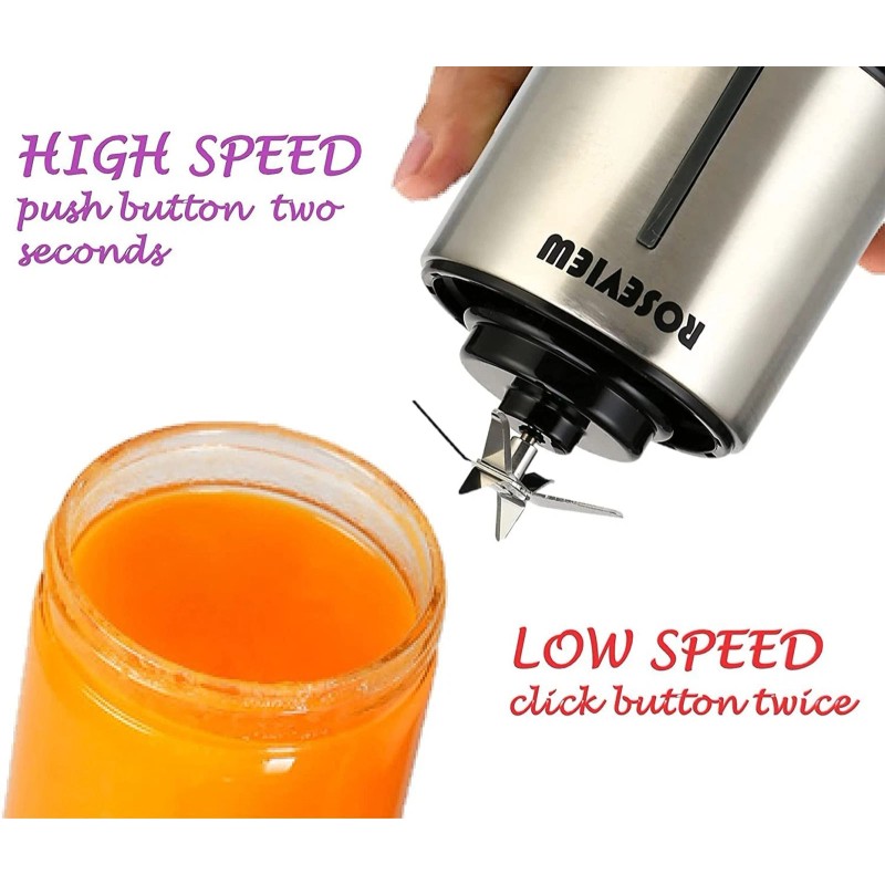 ROSEVIEW Portable Smoothie blender Glass bottle Mini USB rechargeable 2 battery Handhe...