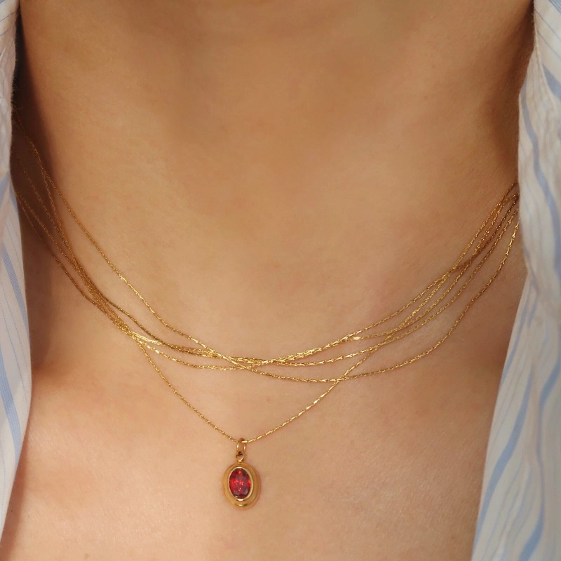 Rosewood and co 18K Gold Plated Red Ruby Pendant Necklace, Non Tarnish Chain in Gift Box