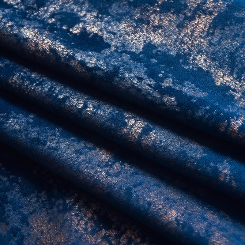 Roslynwood Luxury Gold Foil Print Navy Blue Velvet Curtains 96 inches Long Rod Pocket Thermal Insulated Blackout Window Drapes for Living Room/Bedroom/Dining Room, W52 x L96, 2 Pcs