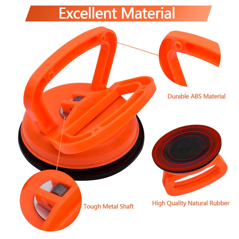 - Complete Dent Puller Kit:Includes a 4.5-inch orange dent puller, two 2.5-inch small suction pullers, a 3.8-inch waxing sponge, and an 11.8-inch microfiber towel. This kit is designed for paintless dent removal and is suited for minor dent repairs without resorting to professional services. The large dent puller has a maximum horizontal suction power of 110 lbs and a vertical suction power of 77 lbs, making it ideal for use on flat surfaces