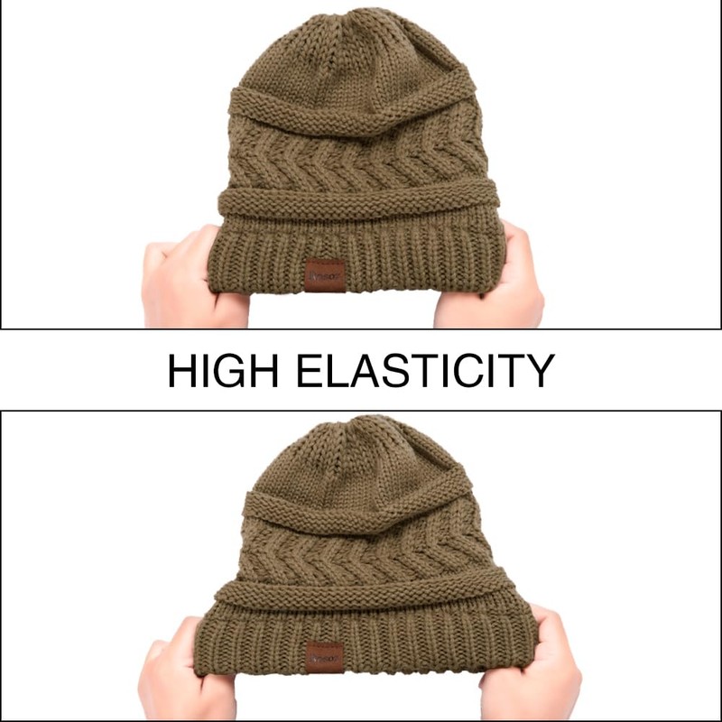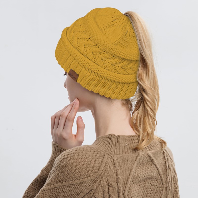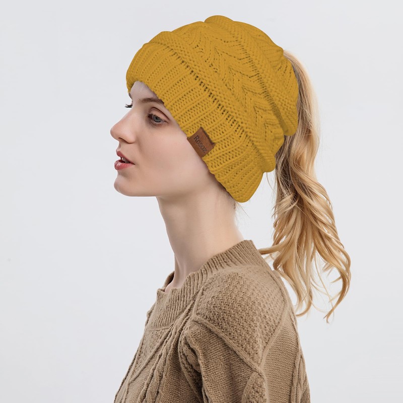 - The solid ribbed knit soft stretch beanies with the option of putting your hair up, this beanie adds even more comfort! Cozy and cute