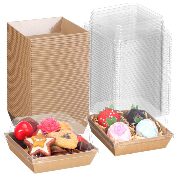 ROSPAKTEK ROSPAKTEK 60Pack Bakery Boxes 4x4x2.5 Inches Charcuterie Boxes with Clear Lids Treat Boxes Chocolate Covered Strawberries Boxes Mini Cake Boxes Macaron Browine Chocolate Truffle Boxes Party Favor