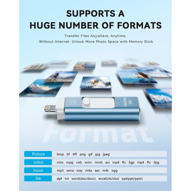 - Lightning-Fast Transfers, Enjoy Anywhere: This iphone storage flash drive for photos uses high-speed ports and high-quality flash memory chips for rapid data transfer, storing your favorite pictures, videos, and music. Whether it's large files, high-resolution photos, or HD videos, it completes the task quickly, saving you time. Seamlessly plug and play via the app on your iPhone or iPad anytime, anywhere. No internet or WiFi required.
