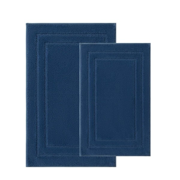 RosPynn Bathroom Rugs Sets 2 Piece, Extra Soft and Absorbent, Non Slip Thick Bath Mats for Bathroom, Machine Washable Bath Mat Set for Bathroom (20" x 32" Plus 16" x 24", Navy Blue)