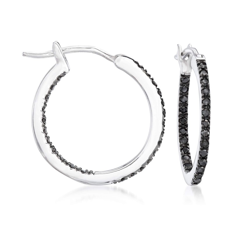 - BLACK DIAMONDS AND STERLING SILVER — .29 ct. t.w. black diamond inside-outside hoop earrings in sterling silver. Round black diamonds. Polished finish. 5/8 in. hanging length, 1/16 in. wide. Snap-bar backings.