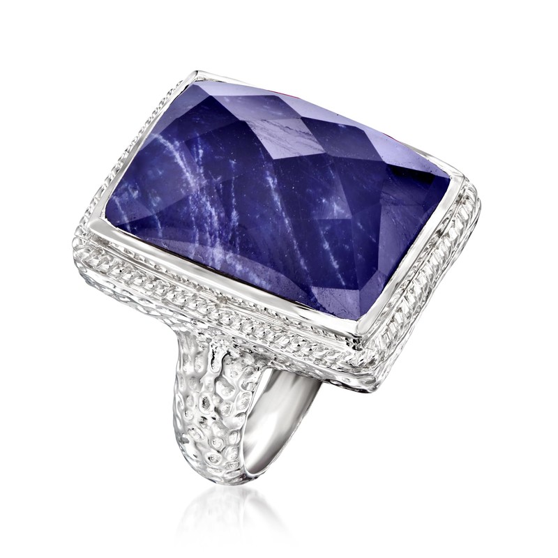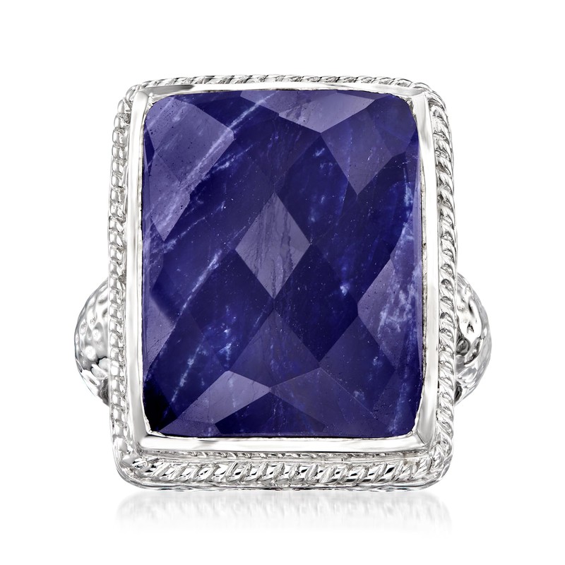 Ross-Simons 17.00 Carat Sapphire Roped-Edge Ring in Sterling Silver. Size 6