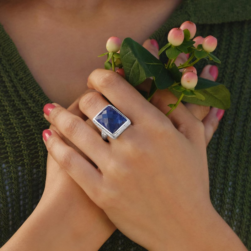 - Sterling silver, sapphire ring for women.