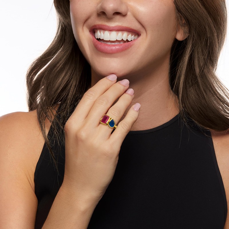 - 18kt yellow gold over sterling silver, quartz ring for women.