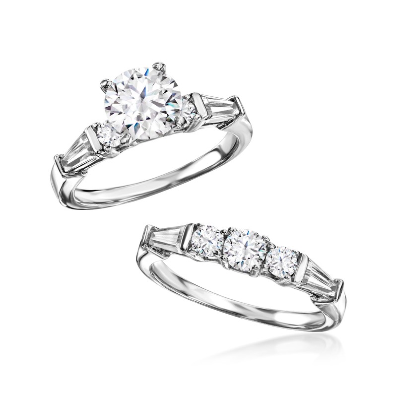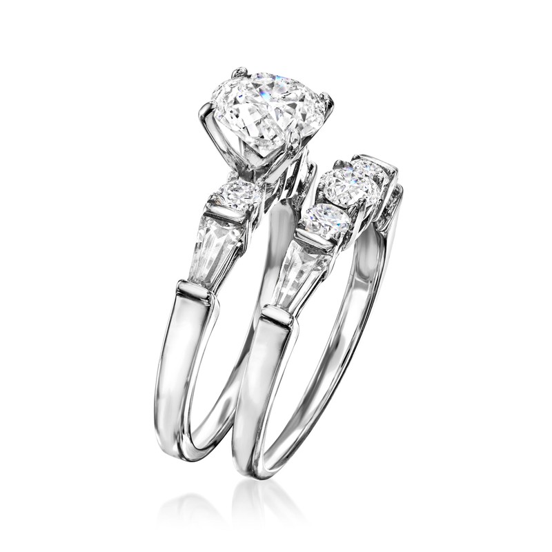 Ross-Simons 2.60 ct. t.w. CZ Bridal Set: Engagement and Wedding Rings in Sterling Silver. Size 7