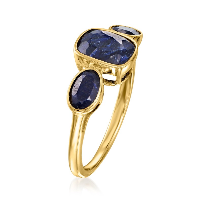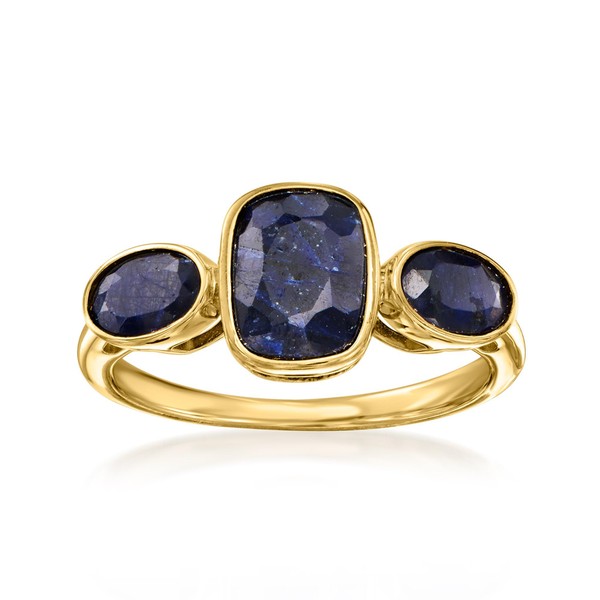 Ross-Simons 3.30 ct. t.w. Sapphire 3-Stone Ring in 18kt Gold Over Sterling. Size 9