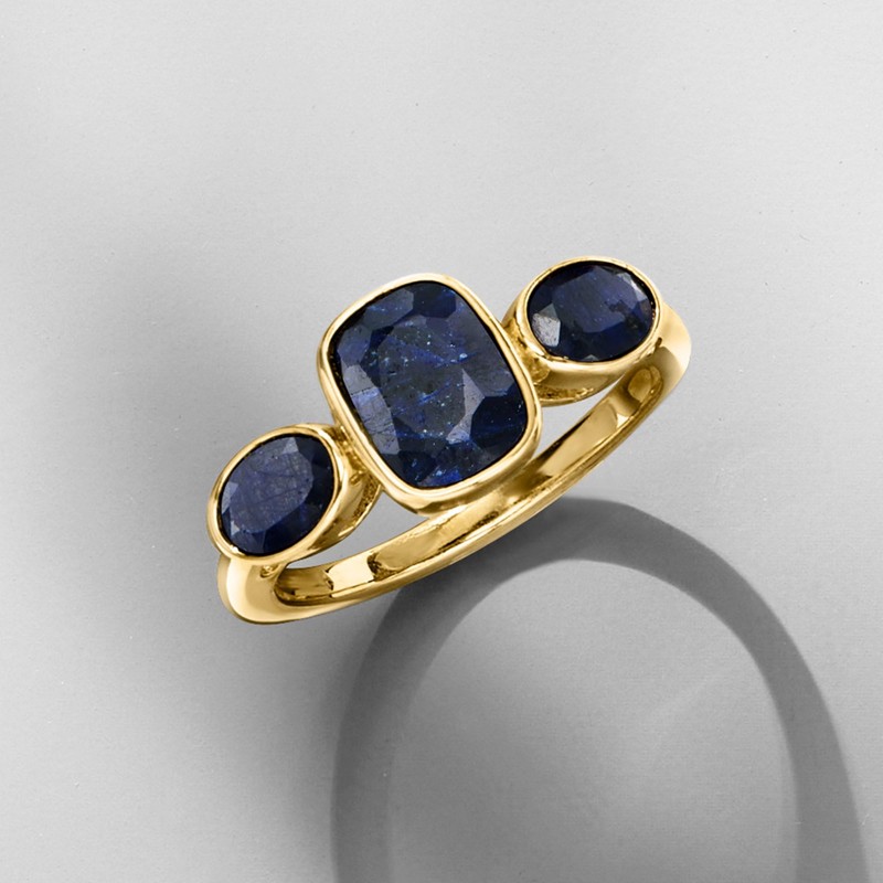 - 18kt yellow gold over sterling silver, sapphire ring for women.