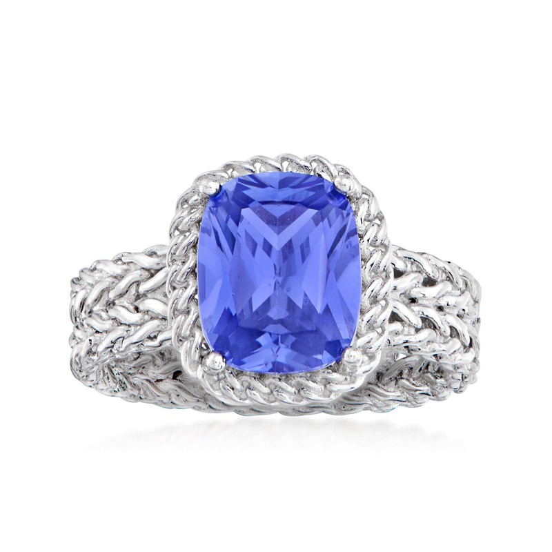 Ross-Simons 4.20 Carat Simulated Tanzanite Basketweave Ring in Sterling Silver. Size 8