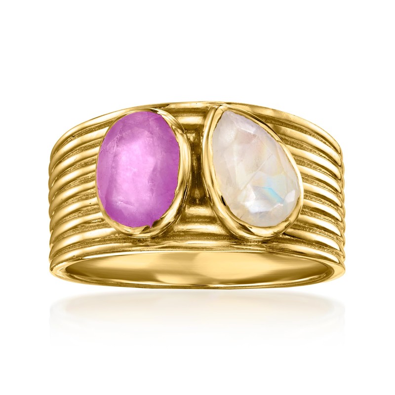 Ross-Simons Moonstone and 1.00 Carat Purple Quartz Toi Et Moi Ring in 18kt Gold Over Sterling. Size 7