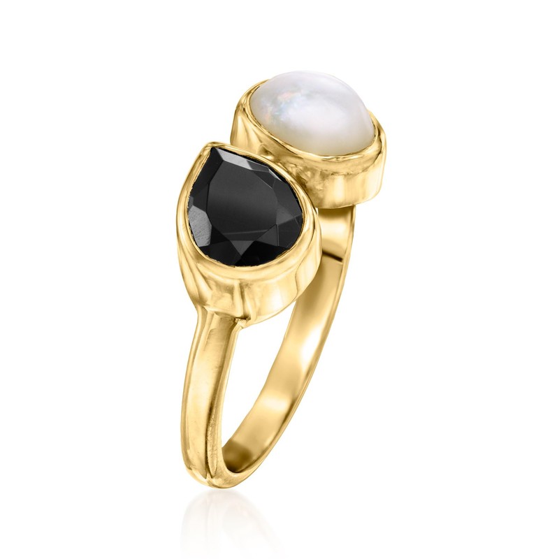 Ross-Simons Onyx and Mother-Of-Pearl Toi Et Moi Ring in 18kt Gold Over Sterling. Size 5
