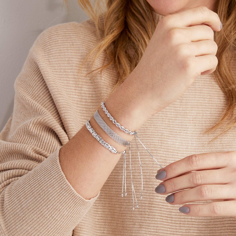 - STERLING SILVER — Sterling silver jewelry set: multi-link bolo bracelets. Polished finish. Adjusts to fit most wrists. 3/16-1/4 in. wide. Box chain.