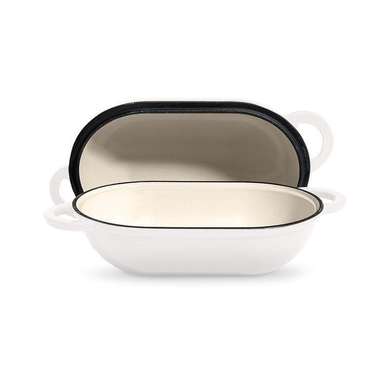 ROSSALLINI Signature Enameled Cast Iron Sourdough Bread Oven | Non-Stick with Tight Fitting Lid for Perfect Baking and Bread Making | 2QT Oval Oven With Lid [White]