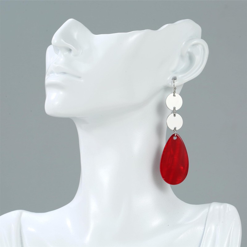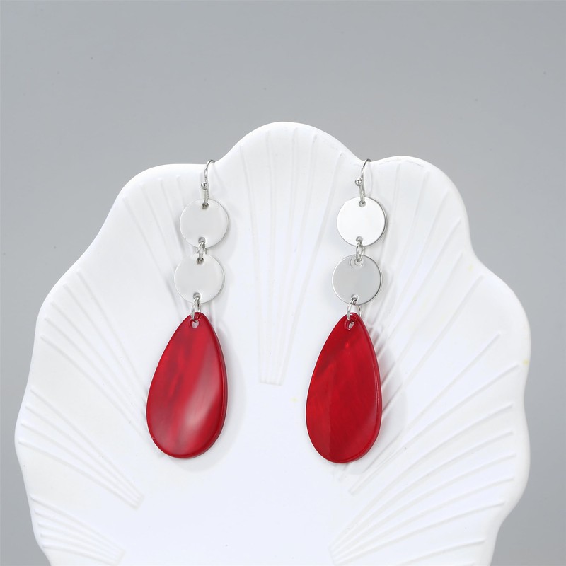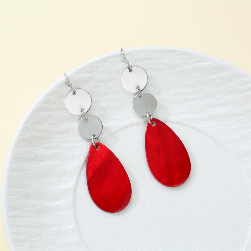 Rosslyons Elegant Long Tear drop Earrings for Women Sparkly Silver Gold Plated Accent Shell Beads Dangle Earrings (Red)