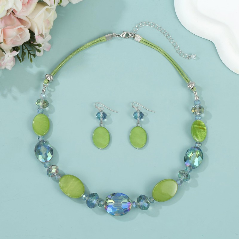 - Fashion & Unique Design: This pretty elegant pearl shell necklaces are made from natural high-craft shell, glass beads stone. It will make you charmer and elegant, beautiful and attractive, complemented by intricate silver-toned metal detailing for a touch of sophistication, this beautiful necklace and earrings set are the perfect fashion costume jewelry for western ladies,