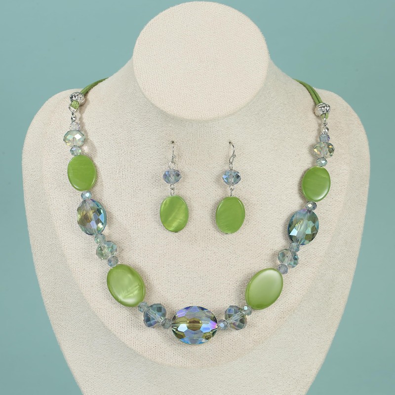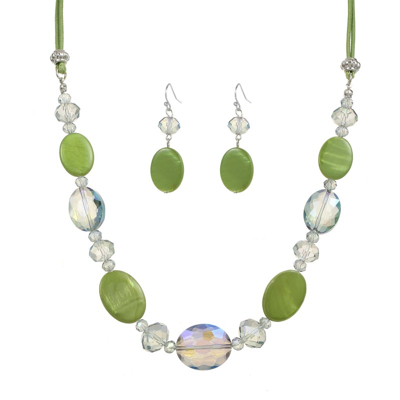 Rosslyons Multi Color Beaded Statement Necklace and Earrings for women Shiny Crystal Stone Beads Choker (Lime Green)