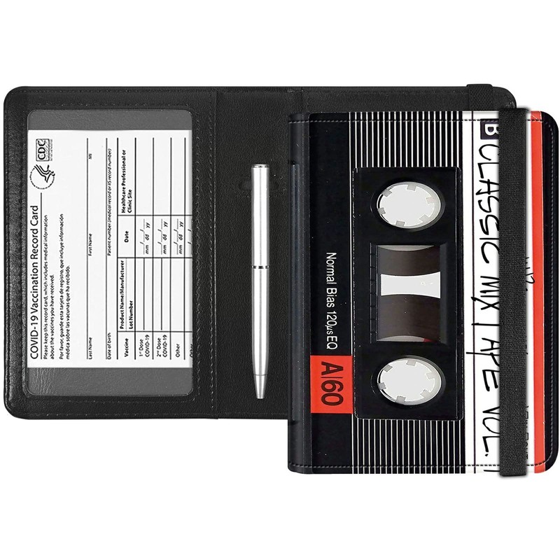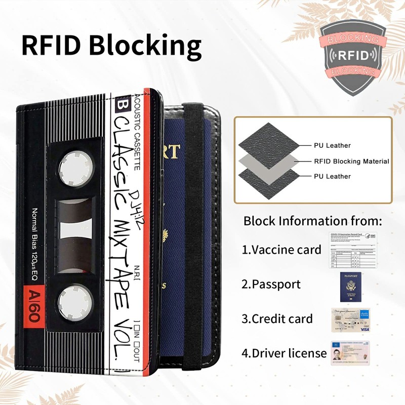 Rossy Passport and Vaccine Card Holder Combo,Passport Holder with CDC Vaccination Card Slot Leather RFID Blocking Wallet Travel Documents Organizer Protector Cover for Women Men,Retro Audio Cassette