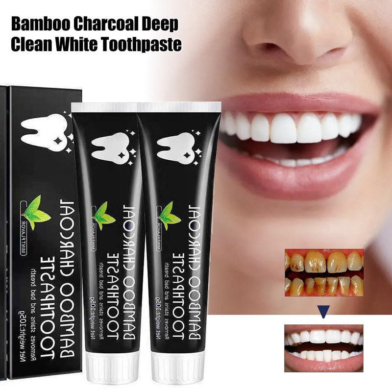 - Upgraded Tooth Color After using this black bamboo charcoal toothpaste for a period of time, the color of your teeth has improved significantly. Long accumulated tobacco and tea stains are gradually reduced and the teeth become whiter and brighter. This is because the cleaning and adsorption effect of bamboo charcoal can restore the natural whiteness of your teeth and give you a confident smile.