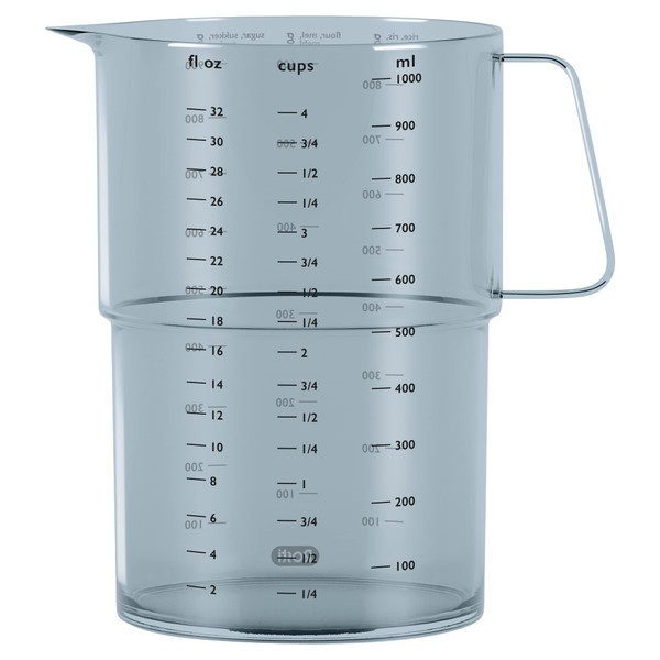 • In addition, the measuring cup has clear measurement indicators for ml, cups and fl oz as well as for flour, rice and sugar.