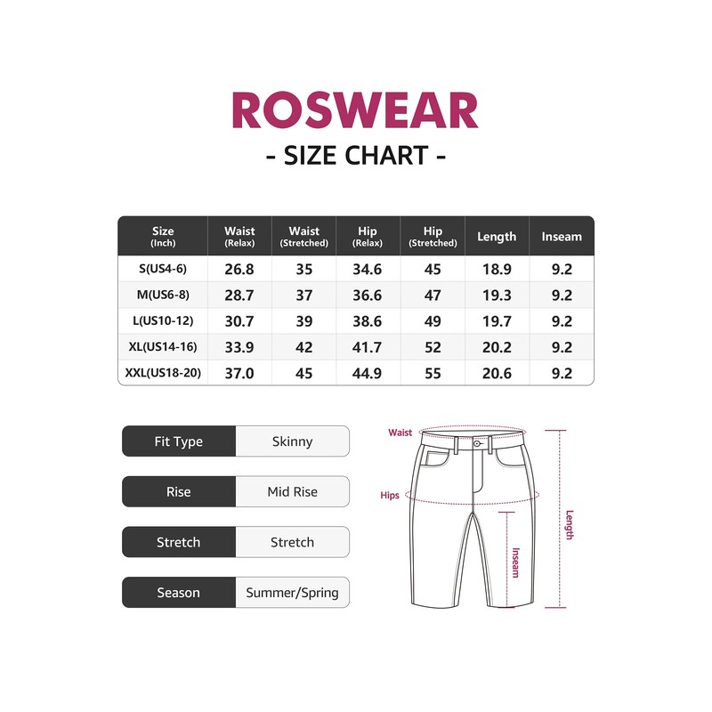 - Roswear Selecciona cuidadosamente la tela súper elástica, para que te sientas libre en todas las posiciones cuando te sientas o haces sentadillas.