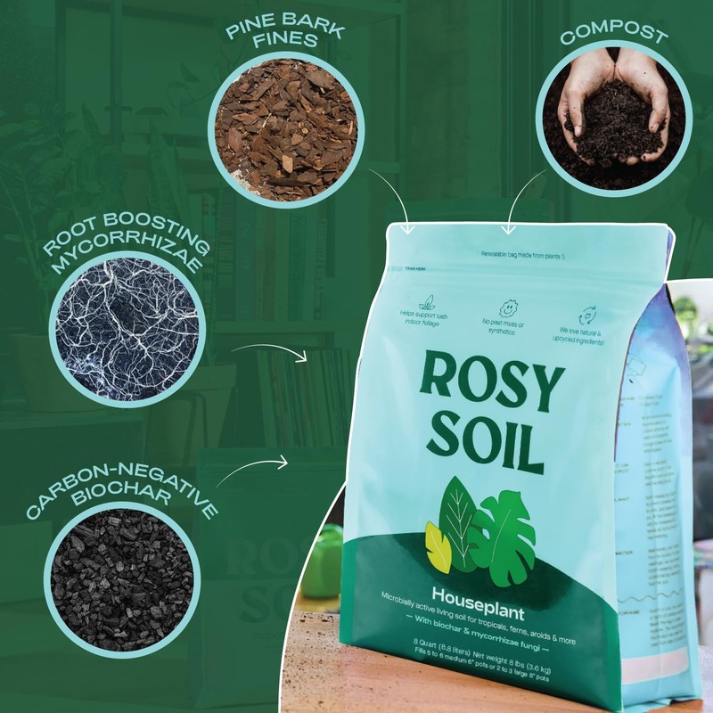 - Thriving Growth Formula: Rosy Soil indoor potting soil for houseplants enhances the well-being of your indoor garden. Our indoor plant soil is enriched with biochar and pine bark fines for robust root systems, balanced moisture retention, and abundant, healthy plant growth. Say goodbye to wilting and welcome flourishing greenery!