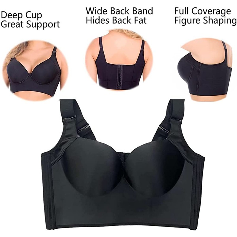 - Perfect Design: Deep cup full back covarage bra to hide your back and side fat, help you correct your posture and shape your upper body. Padding with plunge design provides great support and a sexy cleavage look, flattering small and plus size bust women.