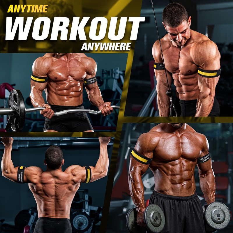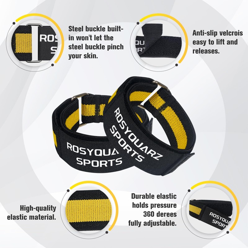 ROSYQUARZ BFR Booty Bands for Men Bicep, Blood Flow Restriction Bands Plan for Arm, Adjustable Velcro Arm Bands for Workout, Best Fabric Bands for Squat Arm & Bicep -Yellow 2PC