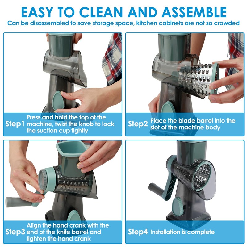 • 🧀【Easy to Clean】The rotating cheese grater can be taken apart for cleaning, or you can simply turn the handle under the faucet to complete a simple rinse.