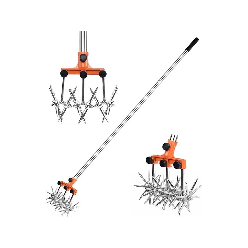 Rotary Cultivator Garden Rotary Tiller Adjustable Stainless Steel Poles Hand Tiller for Soil Mixing or Reseeding Grass Lawn Tiller Total Length 57 Inch