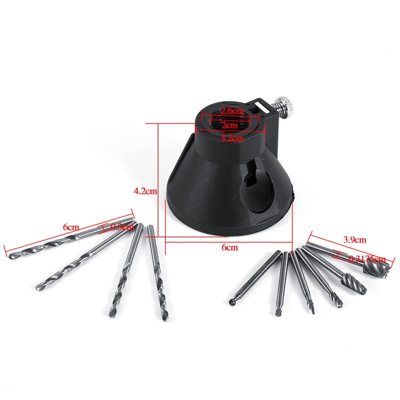 Rotary Tool Accessories,Router Attachment Kit,4pcs Drill Bits + 6pcs HSS Wood Milling Burrs + 1pc Drill Carving Rotary Locator Positioner Hot