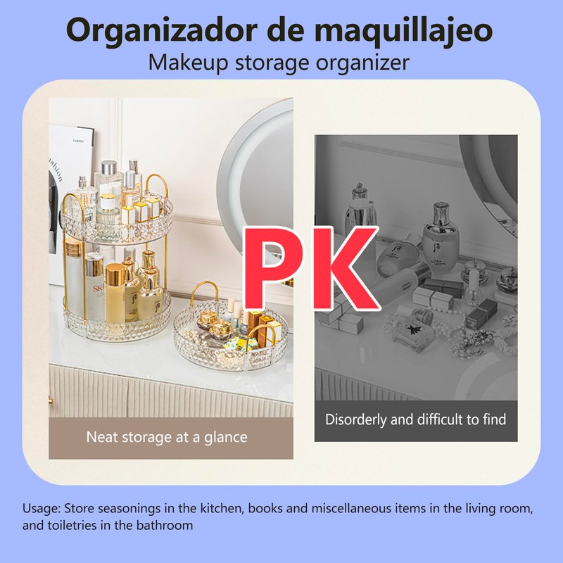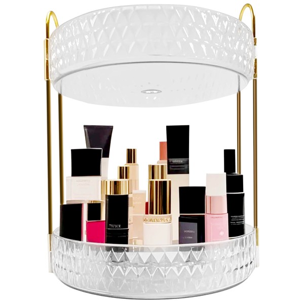 Rotating 2-Tier Makeup Organizer, Large-Capacity Storage with Brush Holder, P...