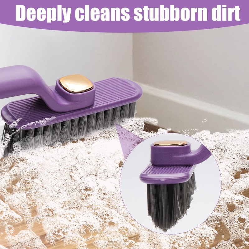 Rotating Crevice Cleaning Brush, Multi Function Crevice Brush Built-in Clamp Shovel 3 in 1 Hard Bristle Gap Cleaning Brush Cleaning Tool for Corners Bathroom Tile, 1 Hook (Purple)