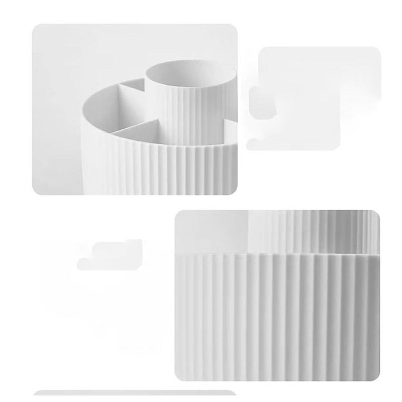 - 【Simple and fashionable appearance】The size of the desk organiser pen holder is: 16*16*13cm; white color through the body appearance, suitable for various styles and spaces, random rotation plus 5 compartments of different heights design, beautiful and creative, make your office look simple and exquisite, easy to enjoy the quality of life.
