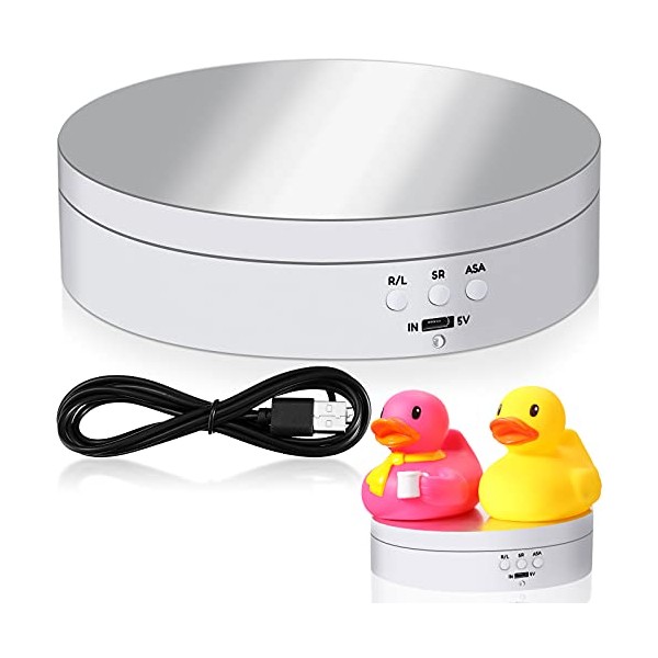 Rotating Display Stand 360 Degree Motorized Rotating Display Spinner Turntable Display Stand with USB Power Cable for Photography Products and Shows (Mirror White)