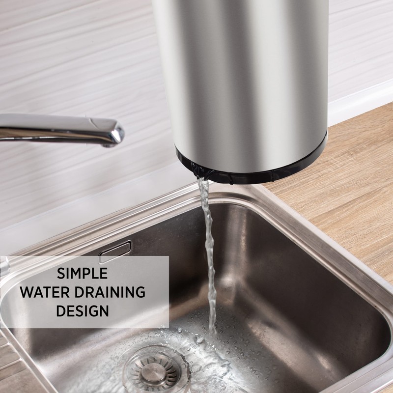 - Simple Drainage System: The shelf organiser cutlery holder has a removable water collection tray with drainage holes. The practical design of the silver and black utensil holder facilitates easy water removal, keeping your utensils dry and clean with a small drainage hole at the bottom of the holder.
