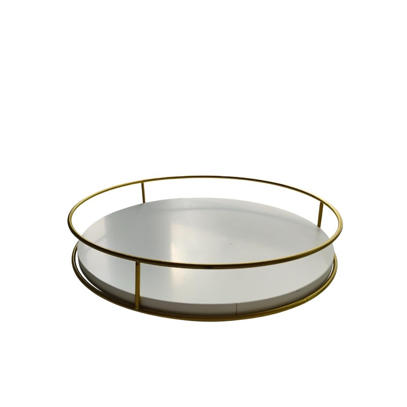Rotating Lazy Susan Organizer Modern Metal and Wood Base Design for Kitchen, Dining, Bathroom (1 Tier White 12 inch)