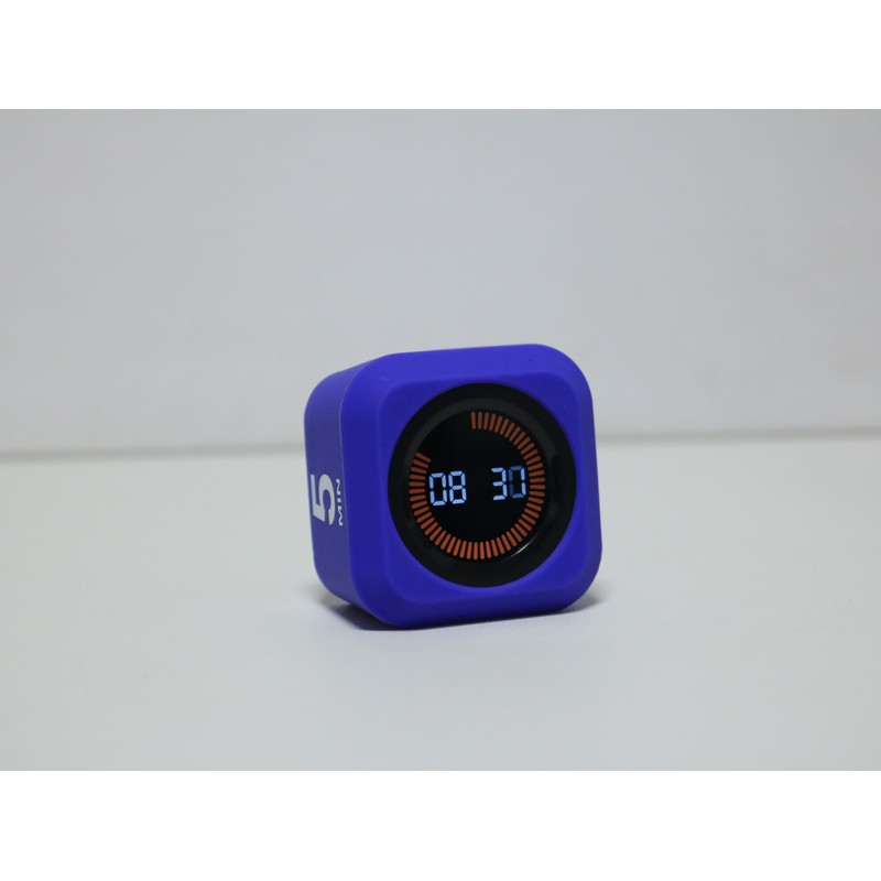 The cube visual timer has a detachable silicone case which prevents desk slips, survives 6ft drops and offers 180° wide-angle viewing.