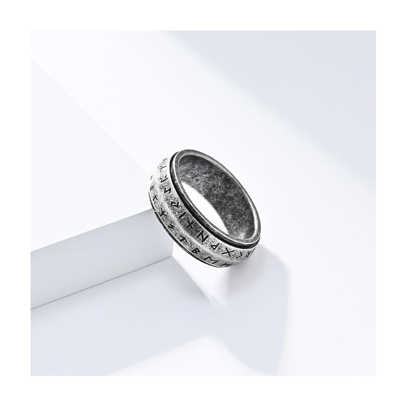 Rotating titanium steel ring with text for men to relieve stress, anxiety, and emotional accessories (Antique Silver, 9)