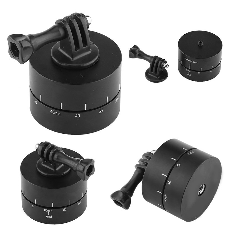 Rotating Tripod, Metal Clockwise Setting Direction Bearing Time Lapse Rotator, Black 360° 60 Minutes Panning Rotating Tripod Time Lapse Stabilizer, 1/4 Screw for Smartphones Cameras