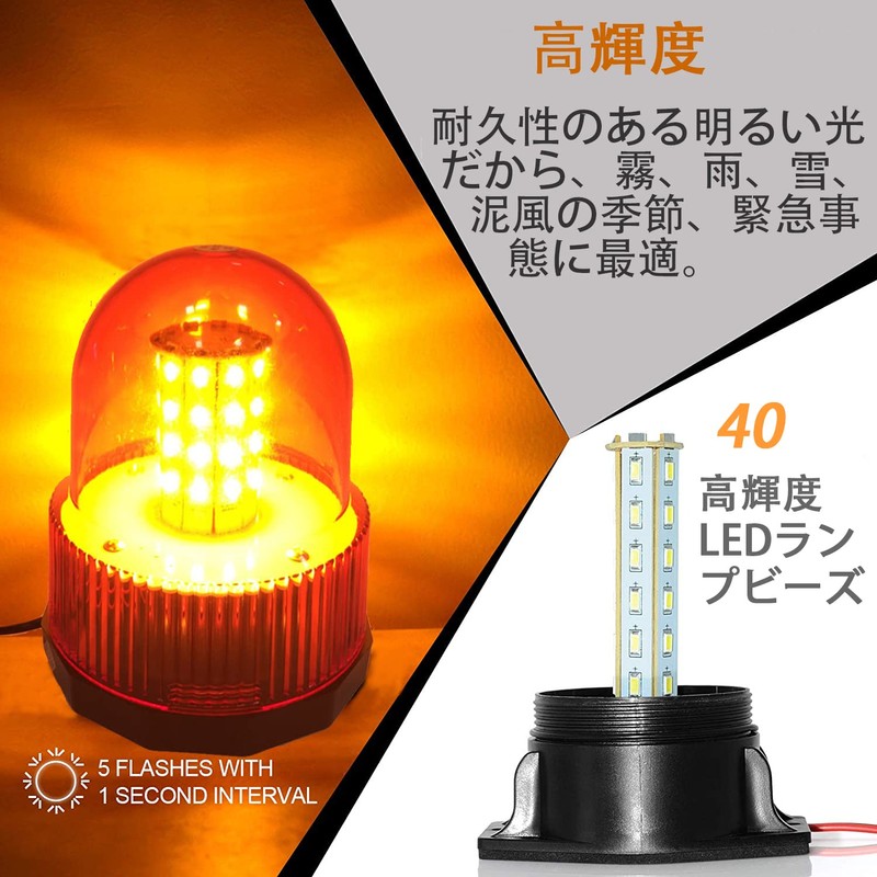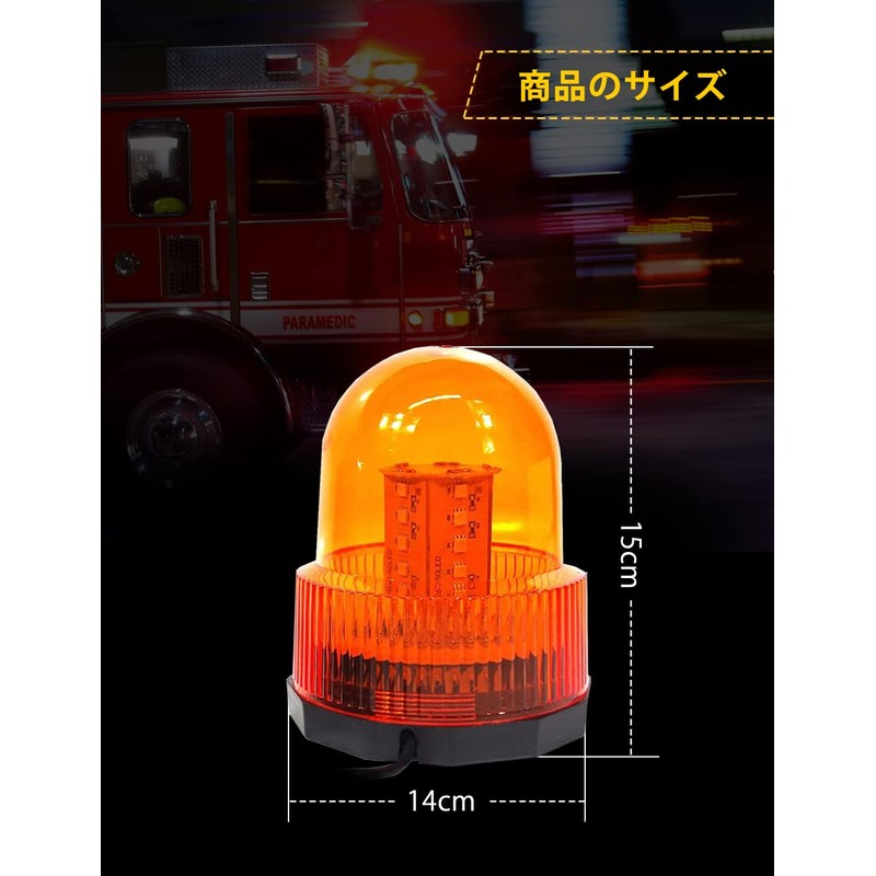 - Product Specifications: Light color: Yellow; DC 12V/24V rotating light; Cord length: 9.8 ft (3 m); Weight: 1.1 lbs (0.5 kg); Power consumption: 20 W; 40 LEDs; Operating temperature: -40 °C to 55 °C; Product dimensions (L x W x H): Approx. 5.5 x 5.9 inches (14 x 15 cm). Provides support and solution within 24 hours