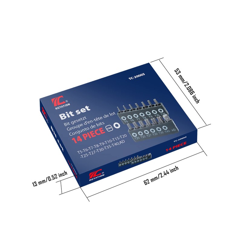 ROTATION 14-Piece Tamper Resistant Star Bits, Chrome Vanadium Steel, T5 - T40 Impact Grade Security Torx Bit Set, 1/4-inch Hex Shank