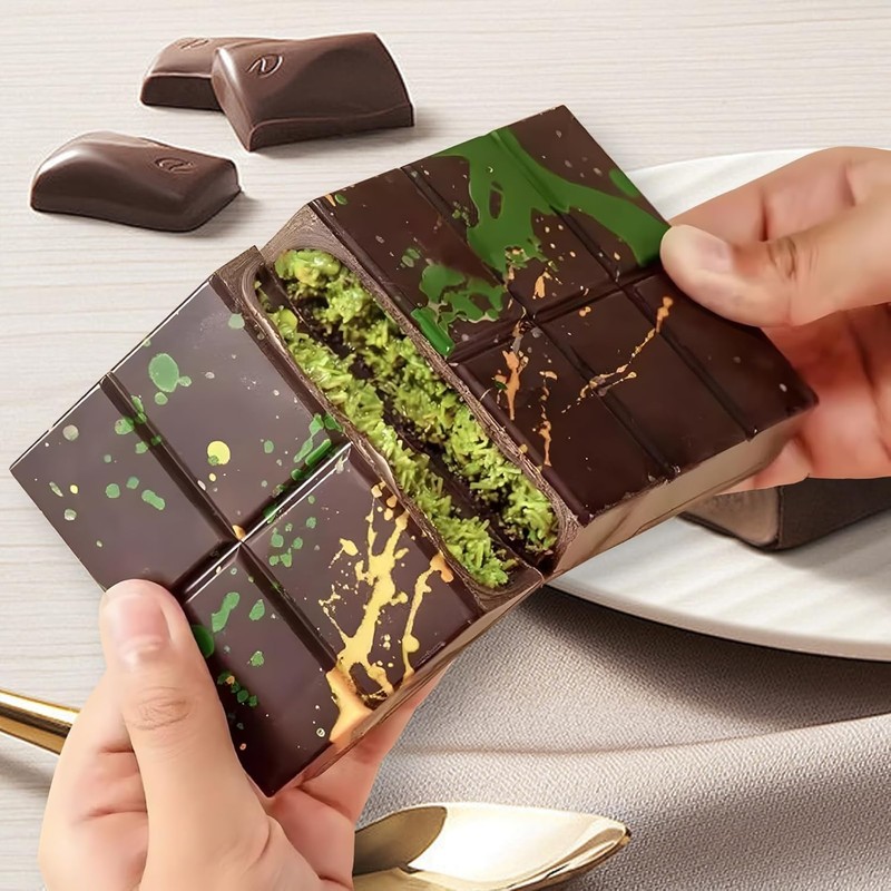 - EASY TO FILL AND UNMOLD: This dubai chocolate bar pistachio is beginner friendly, easy to use easy to fill easy to unmold, simple to operate, very convenient. Note: It is recommended to place a tray or plate on the bottom to match when using.