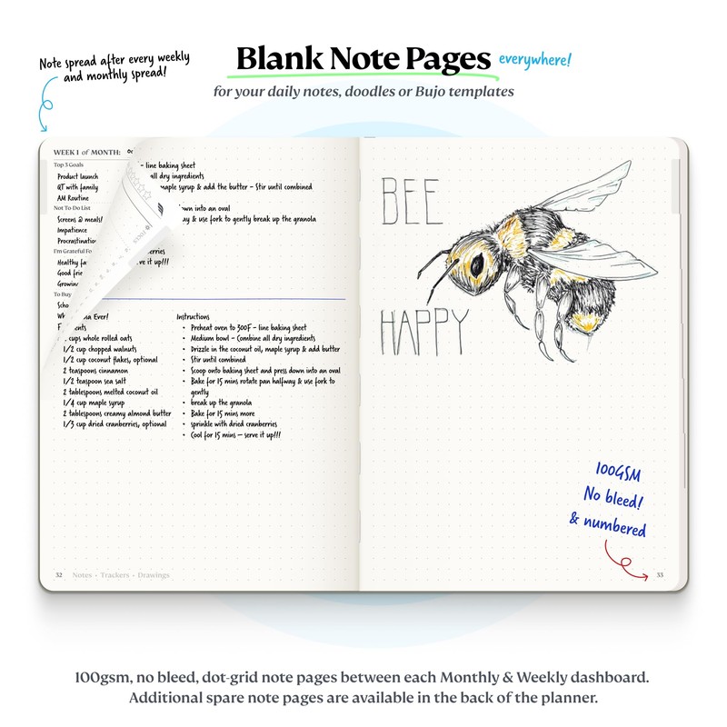 - Satisfying Writing: High performance planner with stitch-bound lay-flat pages. Sturdy PU leather planner hard & softcover options. 100GSM no-bleed, no-smudge paper. 2 ribbon bookmarks, elastic closure, back pocket and smoothly rounded edges.